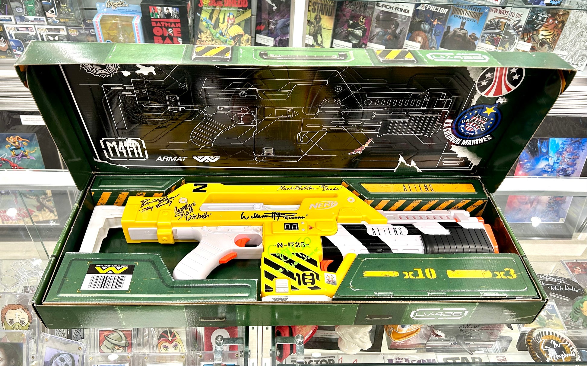 Aliens Cast Hand Signed NERF Limited Edition Hasbro Aliens M41-A Pulse Blaster F5729 Replica