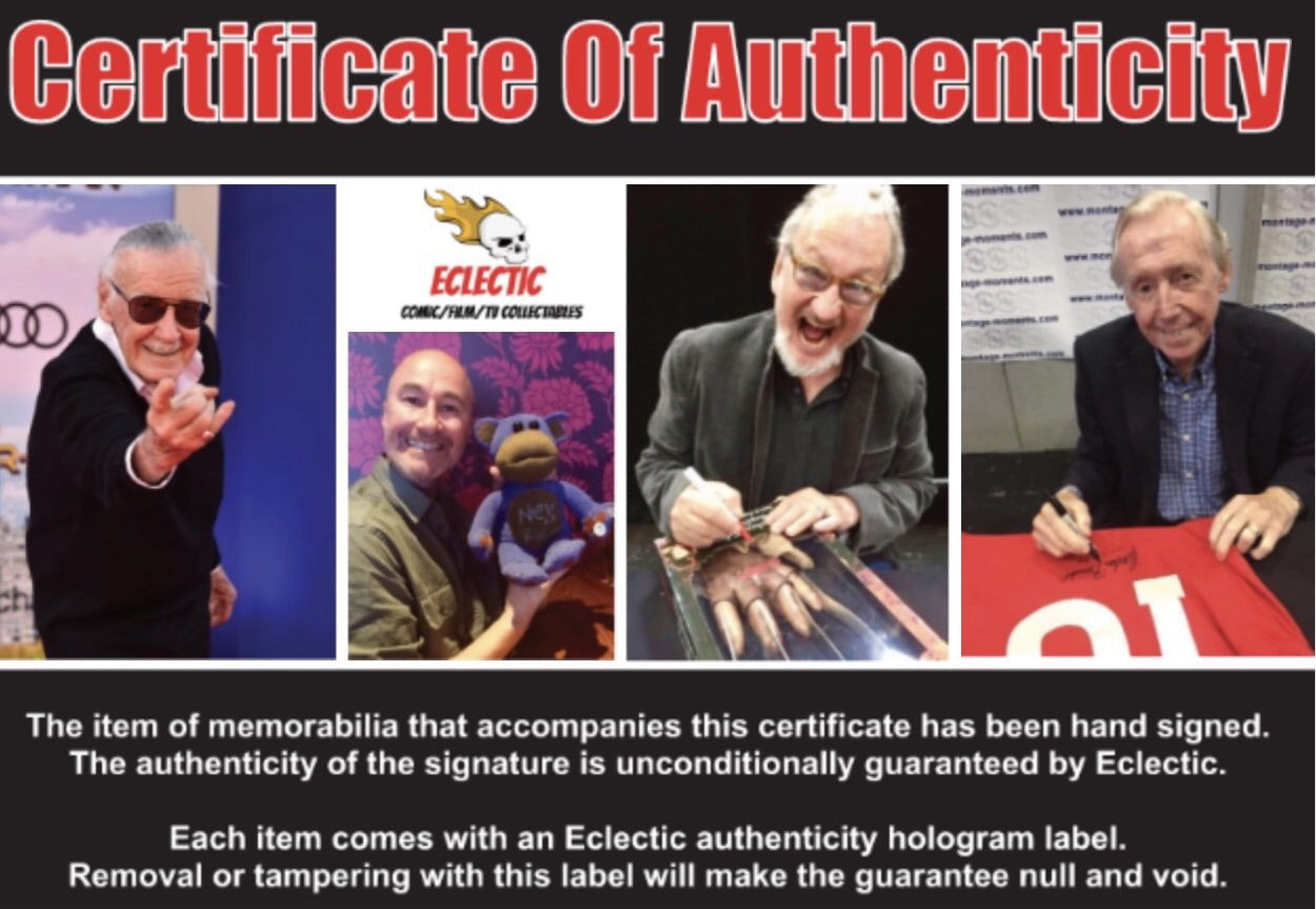 - Eclectic Triple Layer Authenticity included of a Label of Authenticity (LOA) which is tamper-proof along with a Certificate of Authenticity (COA) which guarantee the signatures are authentic and were witnessed by an official representative of Eclectic. A Picture of Authenticity (POA) is also included showing each person signing on the blaster. These photos will be emailed to you following purchase