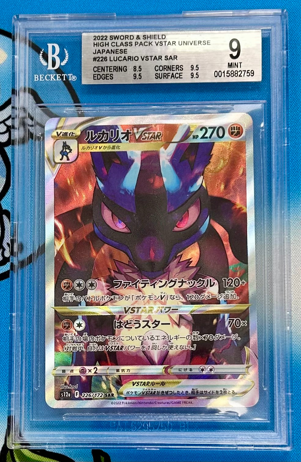 Lucario VSTAR Sword & Shield #226 SAR Beckett Graded 9 Japanese Pokemon Card