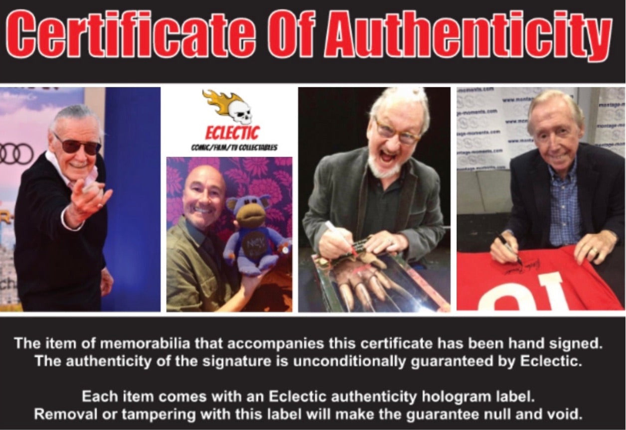 - Eclectic Triple Layer Authenticity included of a Label of Authenticity (LOA) which guarantees the signature is authentic and was witnessed by an official representative of Eclectic, a Picture of Authenticity (POA) showing Andy signing & a Certificate of Authenticity (COA)