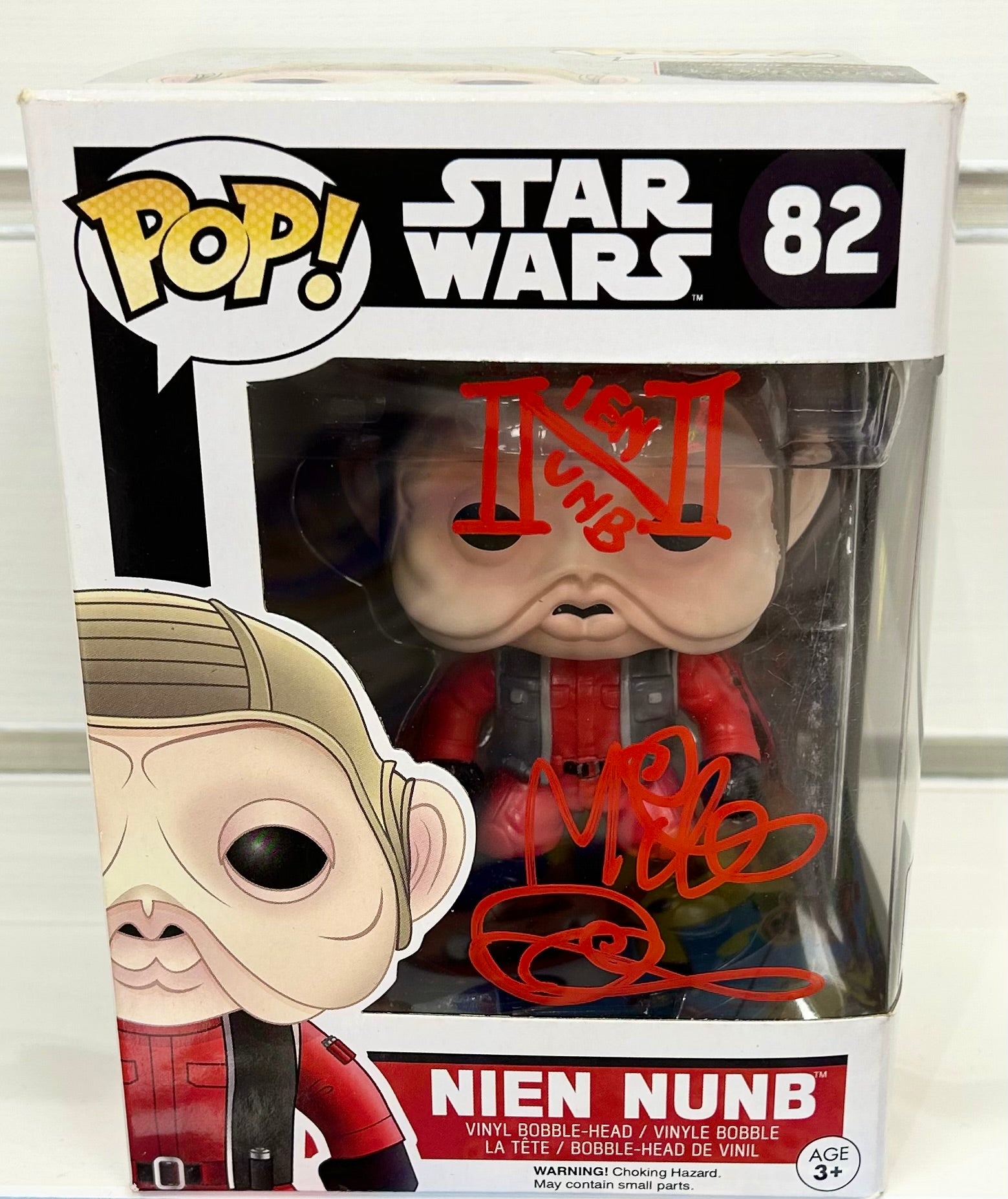 Star Wars Nien Nunb Mike Quinn Hand Signed 82 Funko POP! with Triple Layer Authenticity